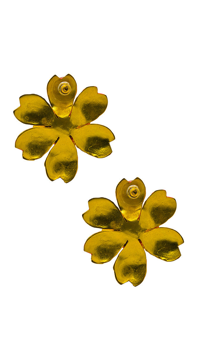 Diese eleganten Dahlia-Ohrringe wurden im Schleudergussverfahren gefertigt, mit edlem hellbraunen Lack veredelt und 18 Karat vergoldet. Die stilisierten Blütenblätter strahlen in warmem Braunton, während das vergoldete Blüteninnere wie Sonnenstrahlen aus der Mitte leuchtet. Ein harmonisches Zusammenspiel aus Farbe, Form und Glanz – ideal für moderne Statement-Looks.