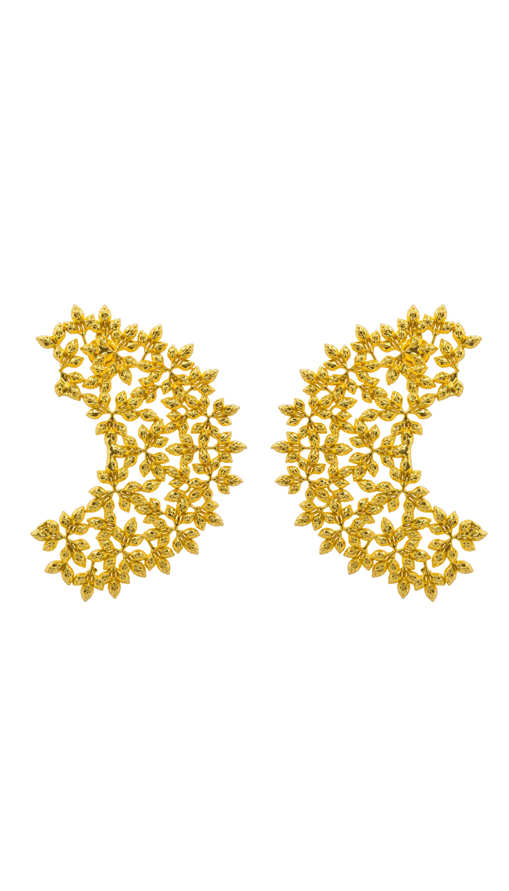 Diese außergewöhnlichen Ohrstecker sind aus hochwertigem Schleuderguss gefertigt und mit einer feinen Goldschicht überzogen. Das kunstvolle Design besteht aus zarten, miteinander verbundenen Blättern, die sich in einer leichten Bogenform um das Ohr schmiegen.