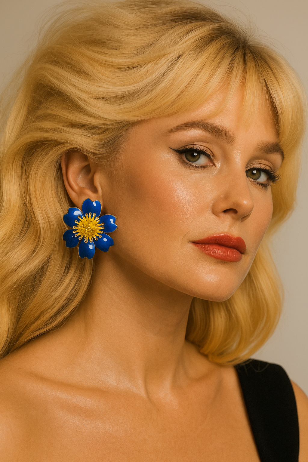 Jedes einzelne Blütenblatt ist in einem tiefen Marineblau lackiert und verleiht dem Design eine ausdrucksstarke, feminine Note.