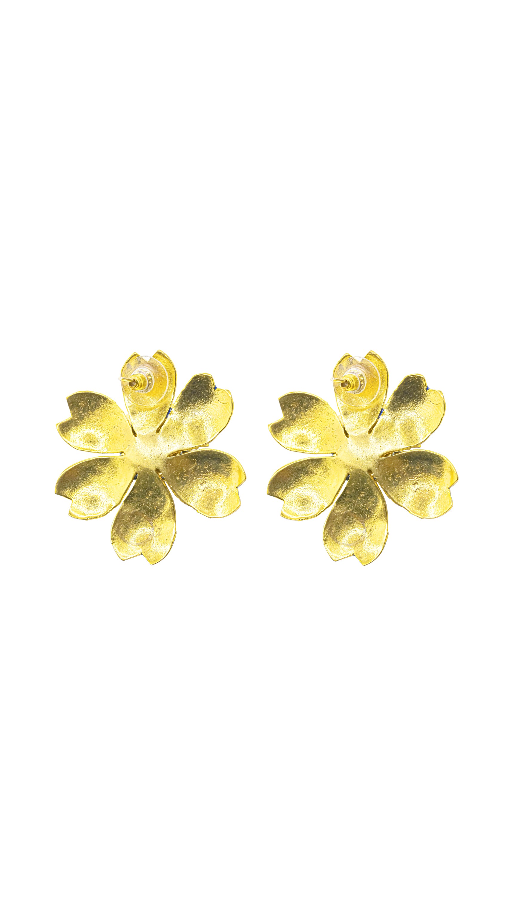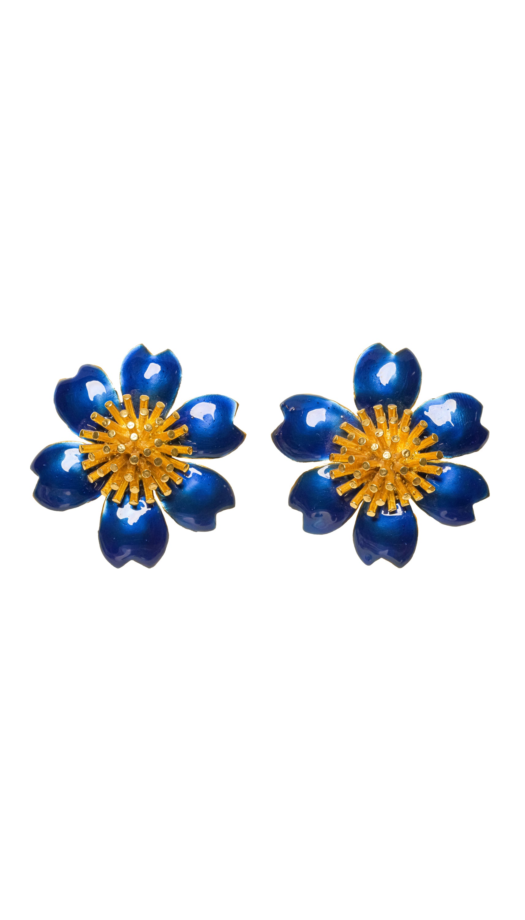 Vergoldete Blüten-Ohrstecker in Marineblau
