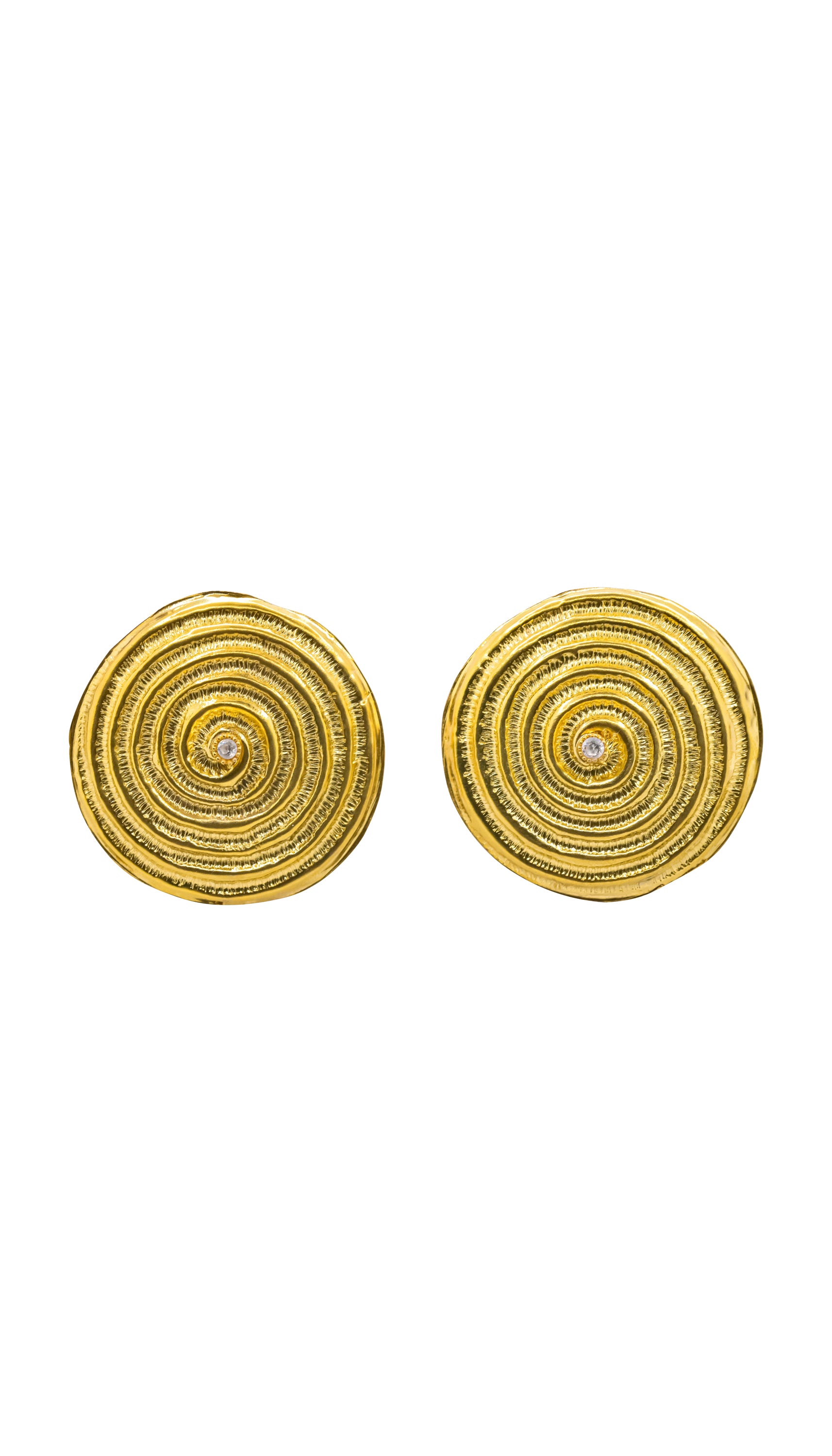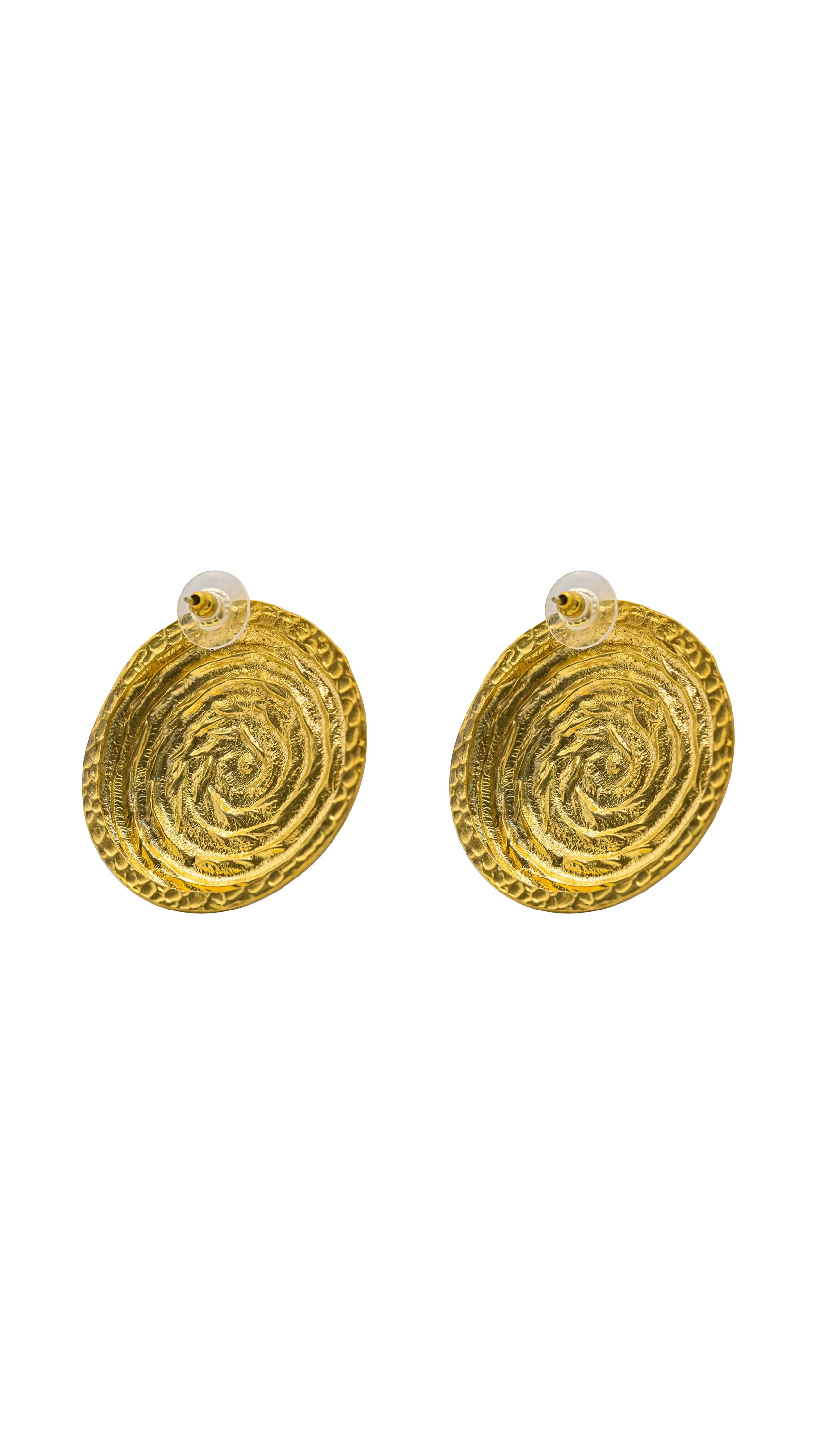 Diese handgefertigten Ohrstecker verbinden antike Ästhetik mit modernem Statement. Im Schleudergussverfahren gefertigt, besticht das Design durch seine markante, spiralförmige Rundung, die in ihrer Form an archaische Schutzsymbole erinnert.