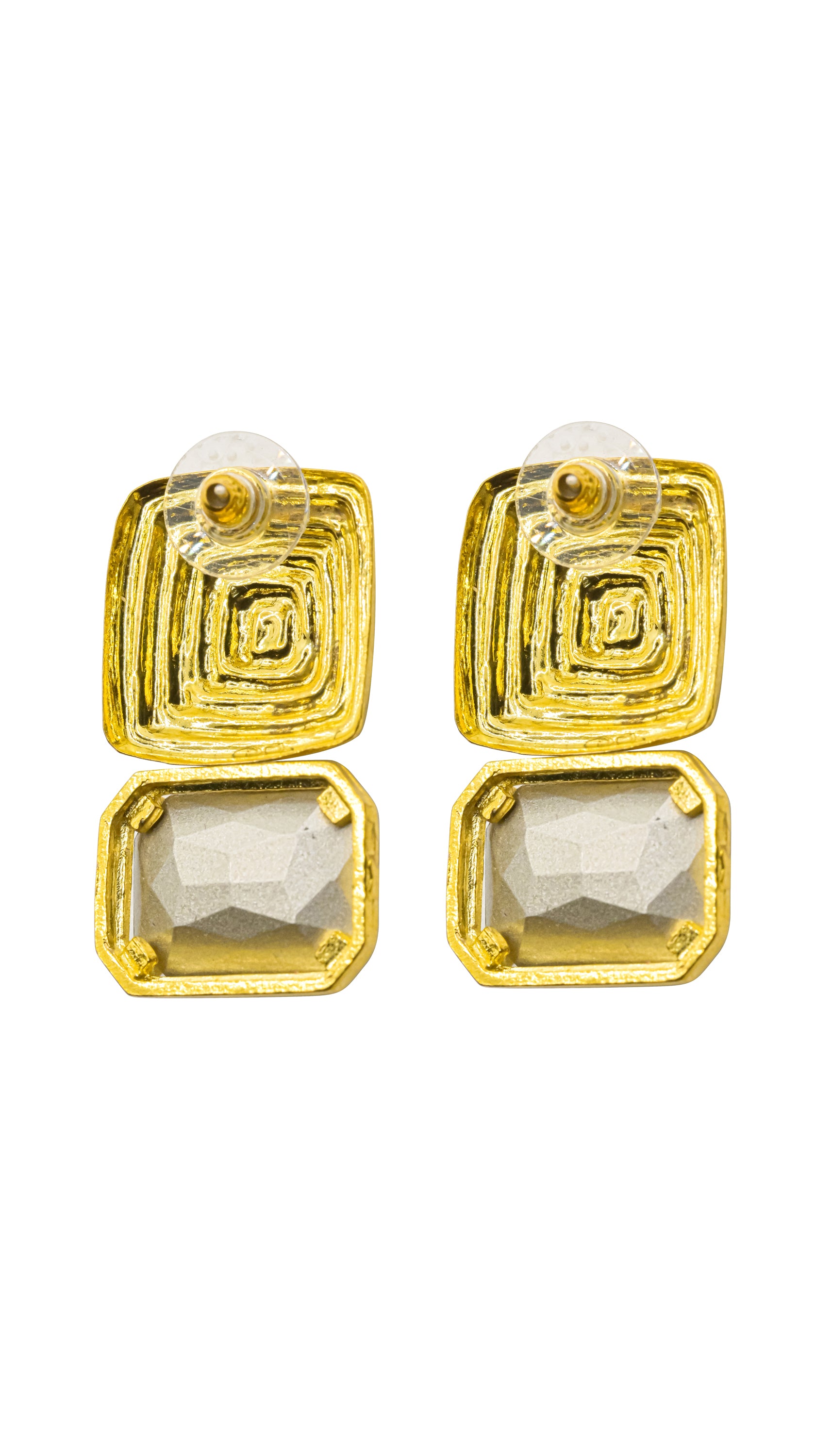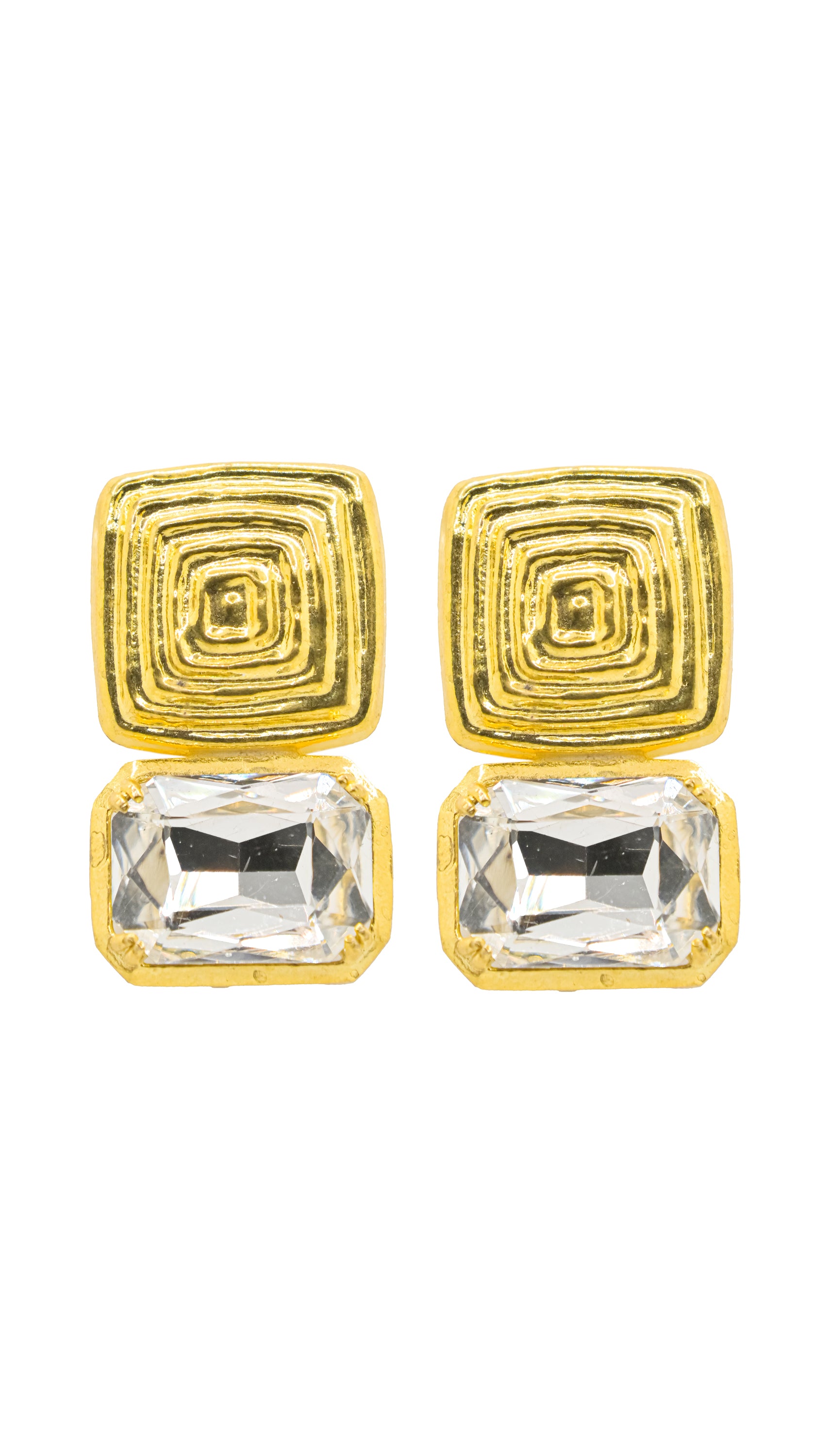 ZADE | Statement in Struktur und Glanz – Vergoldete Ohrstecker mit viereckigem facierten Swarovski-Kristall