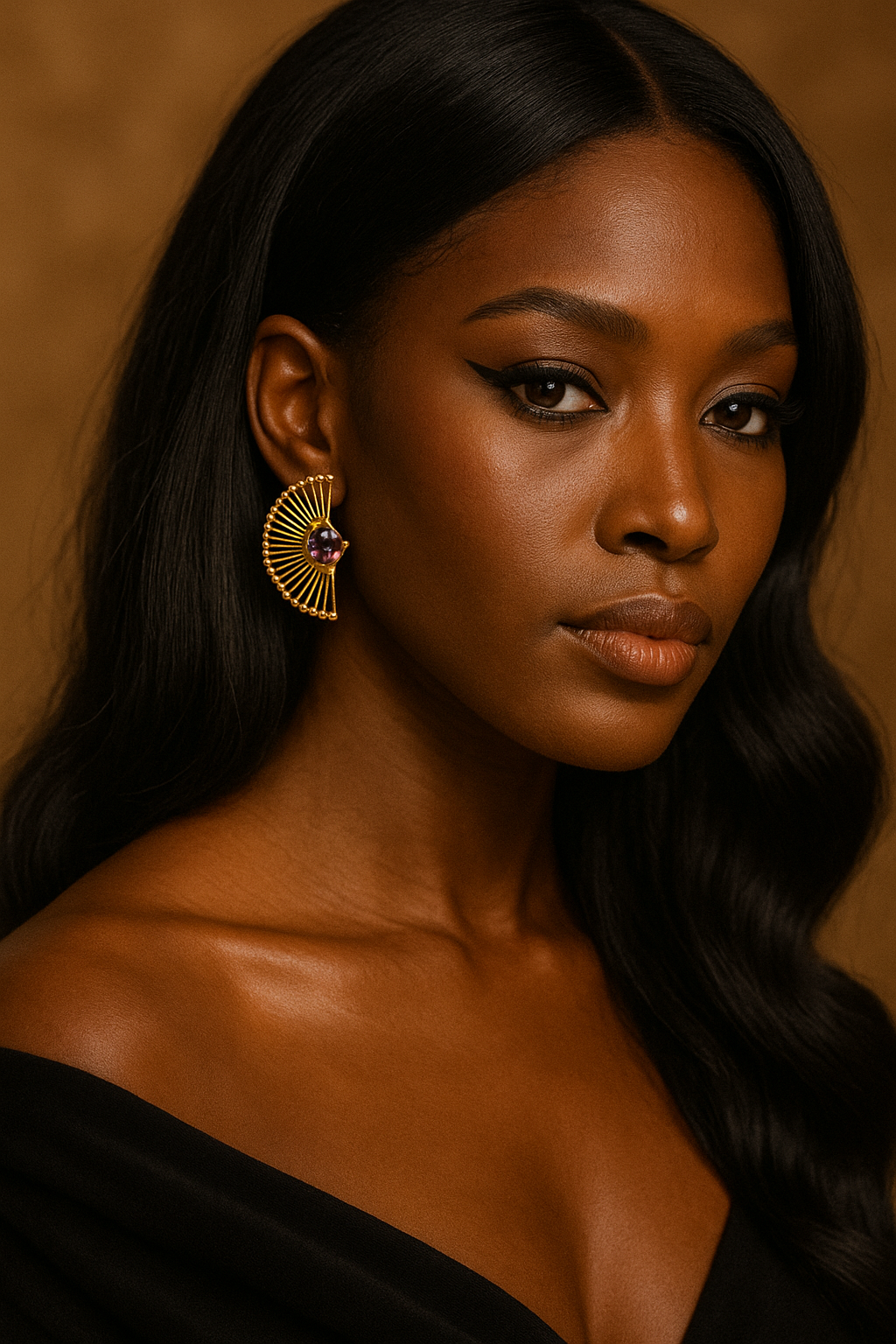 Diese außergewöhnlichen Ohrstecker wurden im traditionellen Schleudergussverfahren gefertigt und präsentieren sich in kunstvoller Fächerform – ein Symbol für weibliche Kraft, Eleganz und Ausstrahlung.