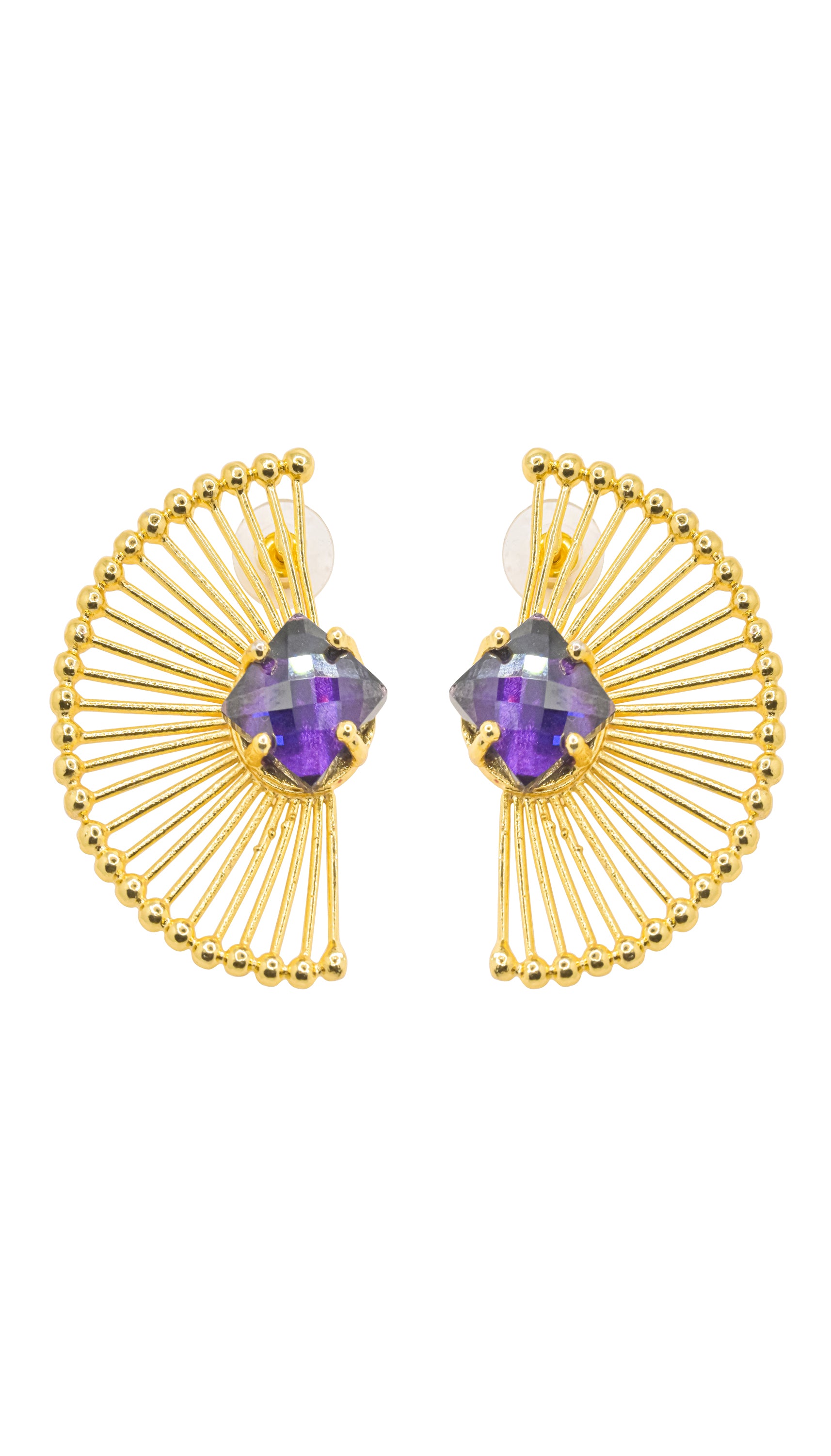 ZADE - Fächerohrringe mit violetten facierten Swarovski Stein