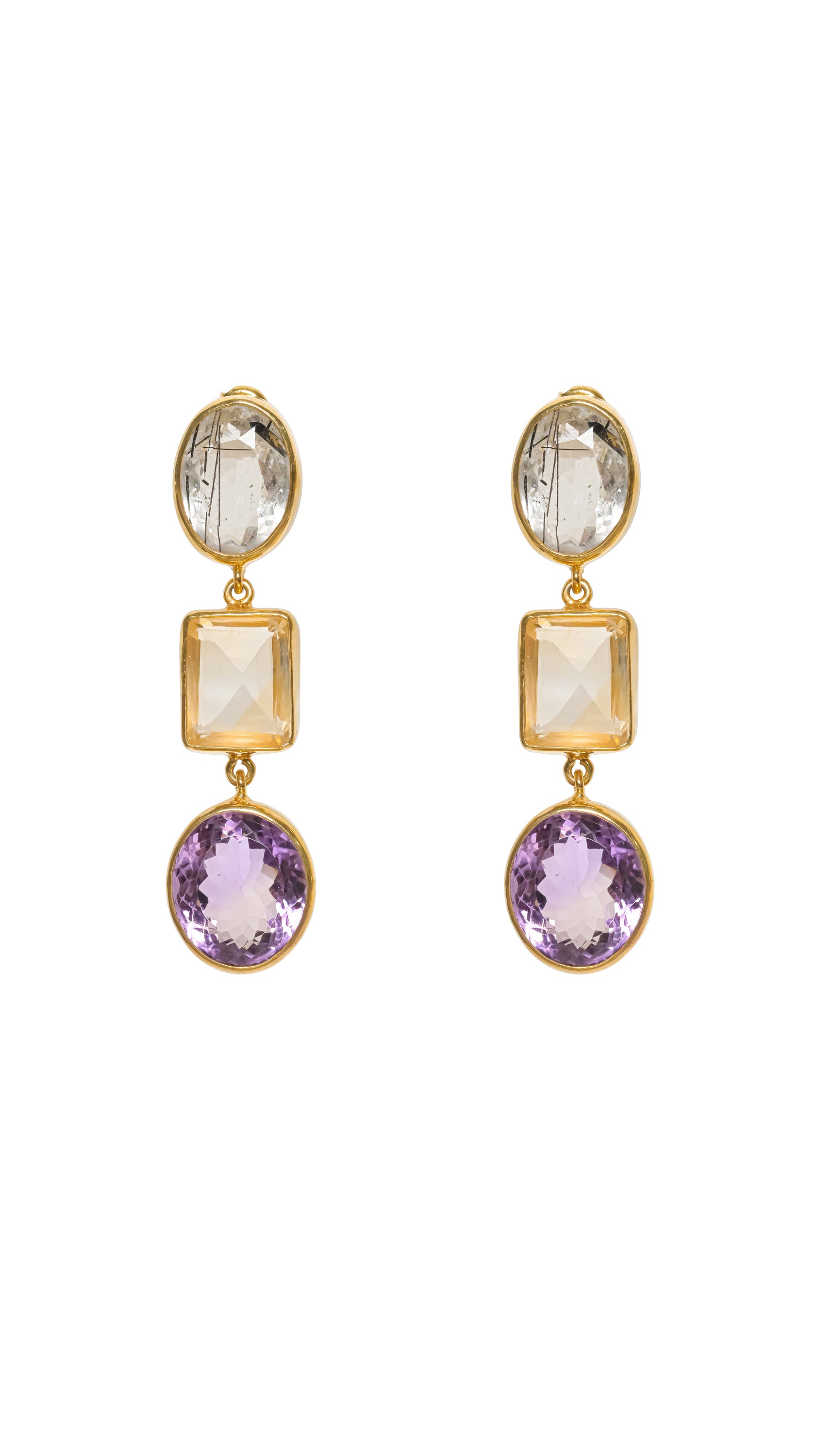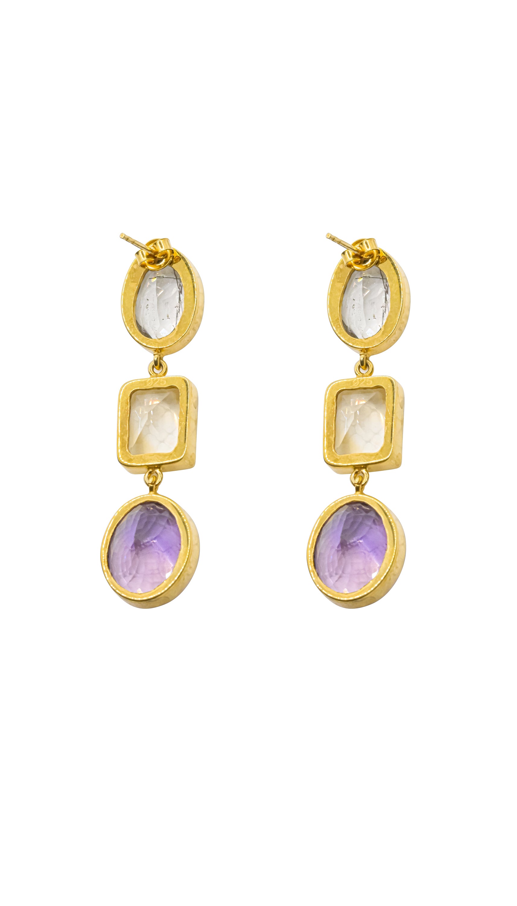 Diese eleganten Ohrhänger bestechen durch ihre harmonische Komposition aus drei unterschiedlich geschliffenen edlen Halbedelsteinen in sanften Nude-Tönen – ein Spiel aus Transparenz, Licht und femininer Leichtigkeit.