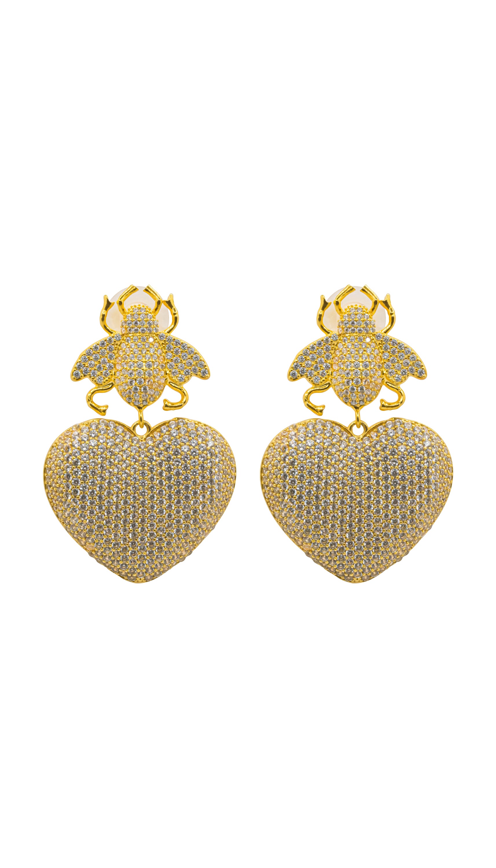 Ein Schmuckstück, das Leichtigkeit und Liebe in sich vereint: Diese eleganten Ohrstecker wurden im Schleudergussverfahren gefertigt, hochwertig vergoldet und mit funkelnden weißen Swarovski-Kristallen besetzt.