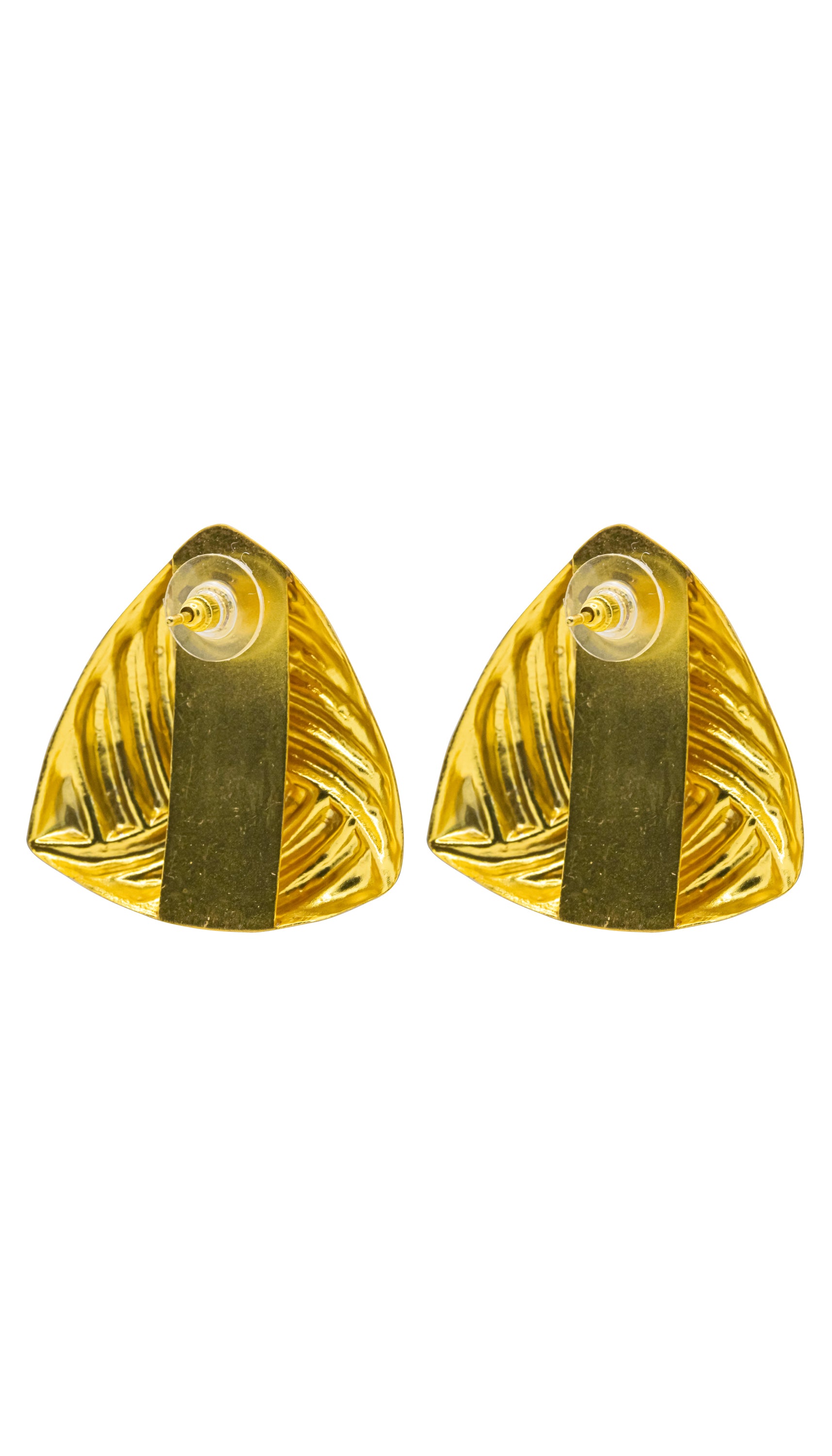 Im Schleuderguss gefertigt und edel facettiert, zeigen sich diese dreieckigen Ohrstecker in stilisierter Blattform – kraftvoll, minimalistisch und elegant.